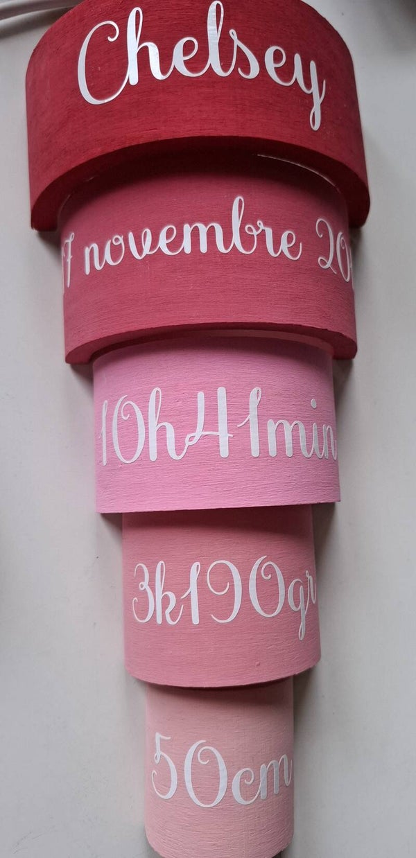 Un jolie cadeau pour un souvenir de naissance. Prénom, date, heure, poids et taille. différentes couleur possible. entièrement peint à la main.